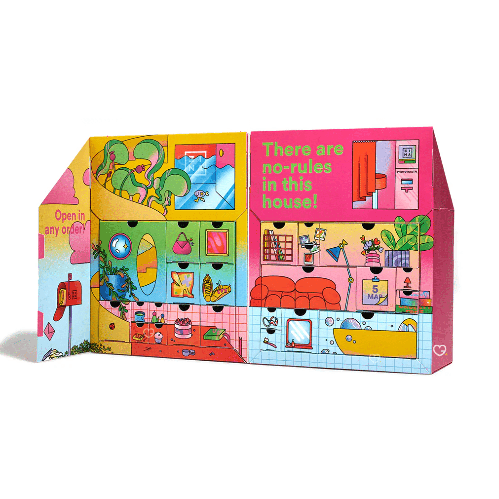 • 🏠 Packaging design en forme de maison reflétant l'identité artistique de la marque