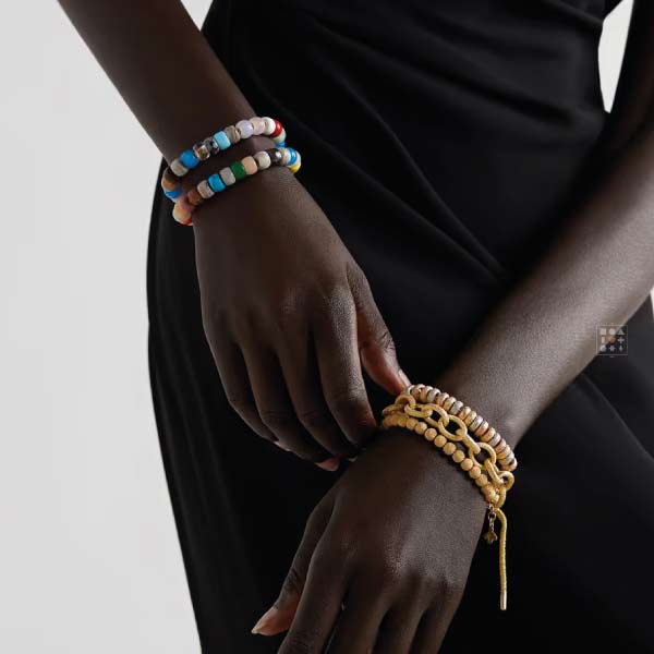 • Contenu : 1 cordon de bracelet Lurex, perles de pierres précieuses variées, plusieurs breloques en or 18 carats