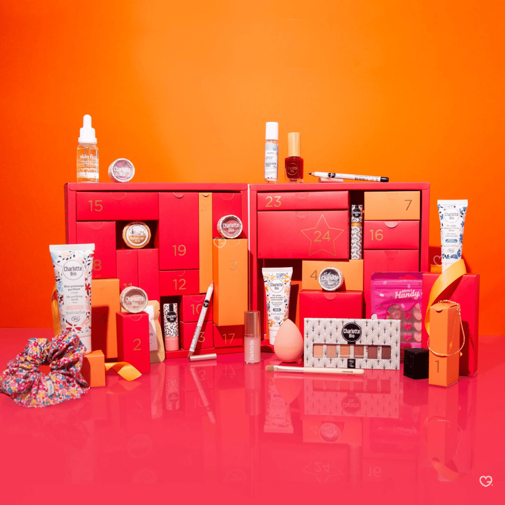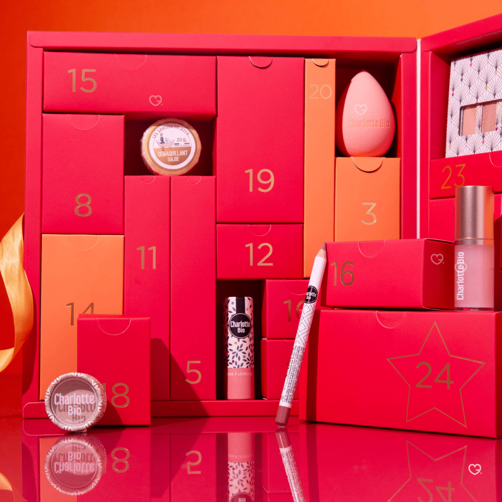 Le Calendrier de l'Avent Charlotte Bio 2025 transforme votre routine beauté en une expérience éco-responsable exceptionnelle avec 24 produits de beauté naturels et biologiques certifiés Ecocert et Cosmebio. Cette collection premium d'une valeur de 258€ proposée à seulement 69,90€ révèle chaque jour une nouvelle surprise parmi 11 produits de maquillage, 7 soins visage et corps, 5 accessoires beauté et 1 surprise gourmande, dont 11 produits en format full-size. Conçu par la marque française Charlotte Bio dans un magnifique coffret rose en carton recyclable, ce calendrier unit l'efficacité de cosmétiques 100% vegan fabriqués en France et en Italie à l'engagement environnemental, offrant ainsi le cadeau parfait pour découvrir ou approfondir une routine beauté clean et accessible sans compromis sur la qualité.
