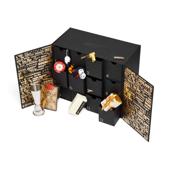 • Contenu : 12 cadeaux thématiques James Bond (un par tiroir)