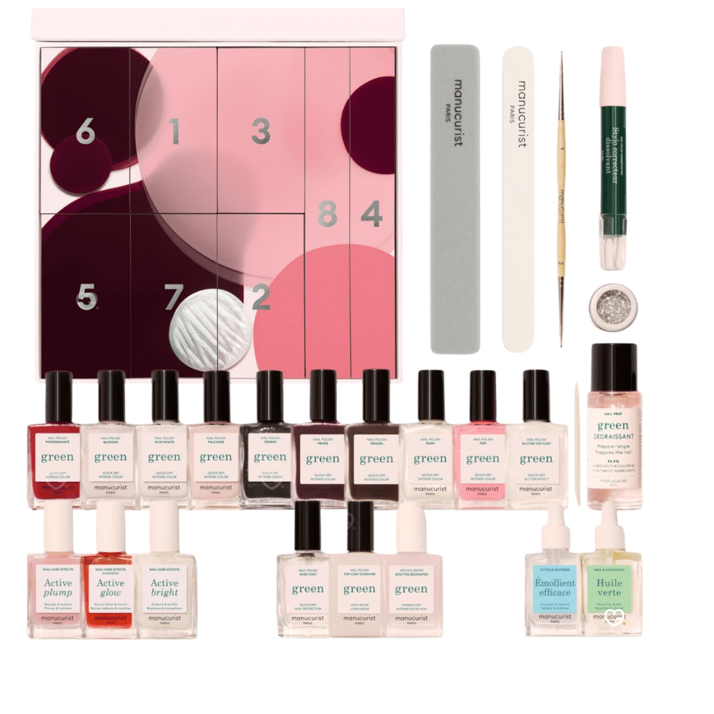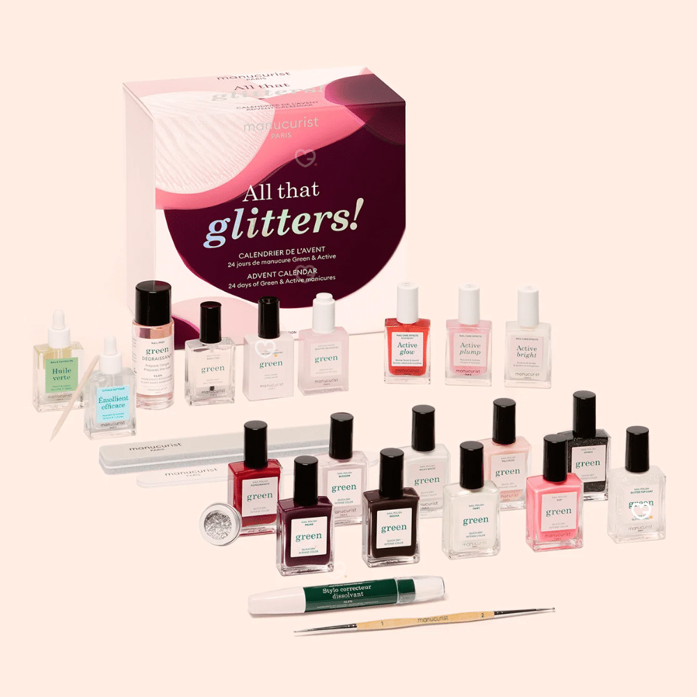 Découvrez le calendrier de l'Avent Manucurist 2025 "All That Glitters", une collection premium de 24 produits full-size d'une valeur de 320€ pour créer des manucures professionnelles à la maison. Cette édition festive réunit 9 vernis dont 3 teintes exclusives inédites, 6 produits Green™ à la technologie éco-responsable, 3 soins Active™ et des accessoires professionnels pour sublimer vos ongles tout au long des fêtes. Formulés sans substances controversées, ces produits 100% vegan et cruelty-free fabriqués en France vous offrent l'expertise de la marque française de référence, plébiscitée par plus de 400 salons professionnels et une communauté de 330 000 nail lovers passionnées.
