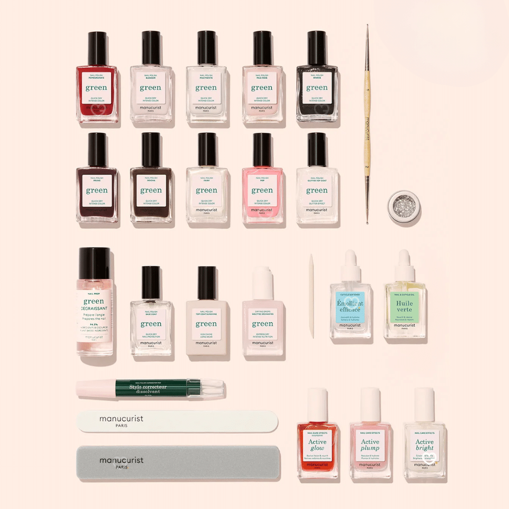 • Produits Green™ : 6 unités (Dégraissant, Base Coat, Gel-effect Top Coat, Glitter Top Coat)