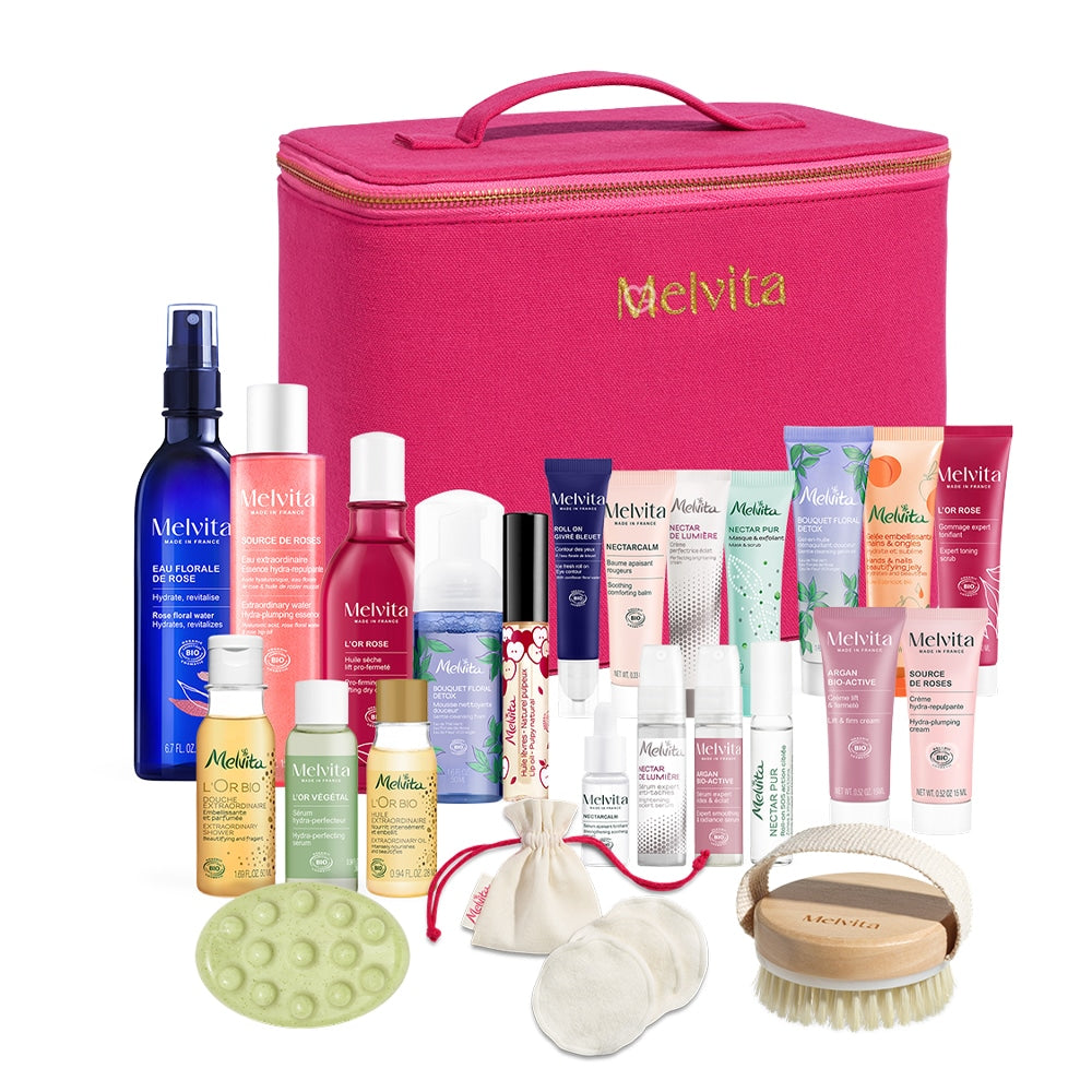 Le Calendrier de l'Avent Melvita 2025 transforme votre routine beauté en rituel quotidien d'exception avec 24 soins certifiés bio logés dans un élégant vanity rose réutilisable. Cette collection premium réunit 295€ de produits Melvita dans un format découverte idéal : 8 produits taille standard, 8 formats voyage et 8 miniatures, incluant les bestsellers de la marque pionnière française du bio depuis 1983. De l'huile précieuse au sérum revitalisant, chaque jour révèle un trésor de beauté naturelle pour sublimer votre peau tout en respectant l'environnement, faisant de ce calendrier le cadeau parfait pour les amatrices de cosmétiques authentiques et durables.