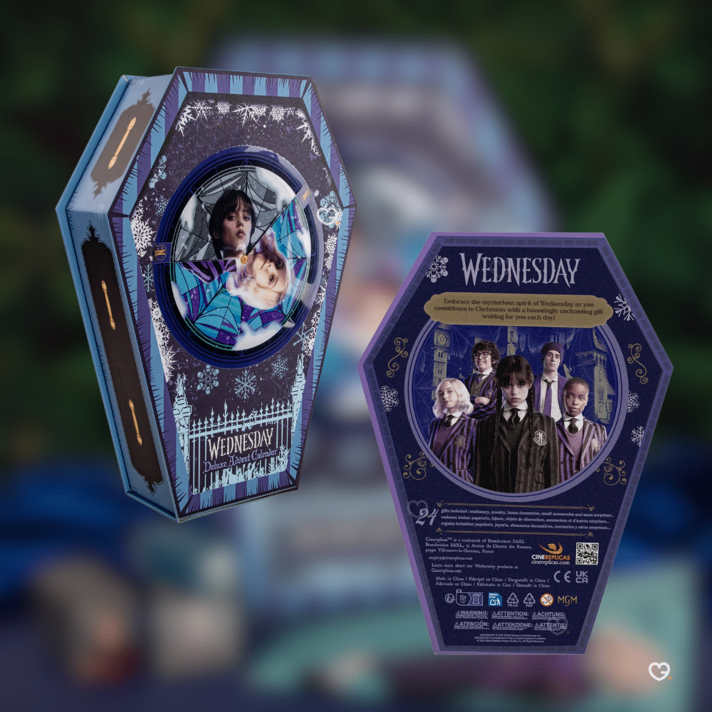 Plongez dans l'univers mystérieux de Wednesday Addams avec ce calendrier de l'avent deluxe 2025 signé Cinereplicas, présenté dans un écrin en forme de cercueil à effet lenticulaire qui capture parfaitement l'esthétique gothique de l'héroïne Netflix. Cette édition collector exclusive sous licence officielle MGM révèle 24 surprises soigneusement sélectionnées incluant bijoux, accessoires et articles de papeterie aux couleurs sombres et élégantes de Wednesday. Chaque jour dévoile un cadeau unique transformant votre compte à rebours de Noël en une expérience macabre et raffinée, parfaite pour les fans de la série qui souhaitent prolonger la magie gothique de Nevermore Academy jusque dans leur quotidien avec des objets de collection authentiques et de qualité premium.