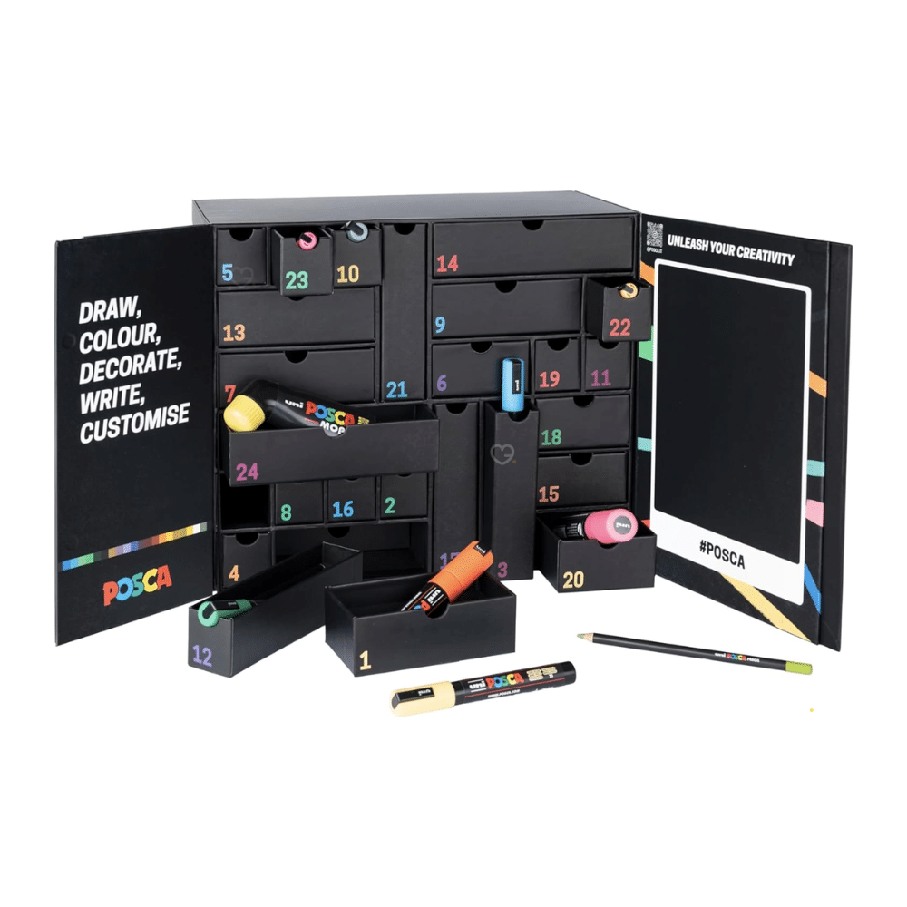 Transformez votre mois de décembre en une aventure créative exceptionnelle avec le Calendrier de l'Avent POSCA 2025, une édition limitée qui révèle chaque jour un nouvel outil artistique professionnel de la marque emblématique du street art. Cette collection premium de 24 produits créatifs soigneusement sélectionnés vous offre bien plus qu'un simple calendrier : découvrez des marqueurs POSCA aux encres pigmentées opaques, des accessoires de dessin innovants et des surfaces créatives, le tout dans une boîte réutilisable de 43 x 37 cm qui deviendra votre coffre à trésors artistique. Parfait pour les artistes amateurs et confirmés, ce calendrier allie tradition des fêtes et développement artistique, vous permettant d'explorer de nouvelles techniques sur papier, bois, métal et textile grâce à la polyvalence légendaire des outils POSCA, tout en constituant le cadeau idéal pour quiconque souhaite nourrir sa passion créative avec des fournitures d'art de qualité professionnelle.