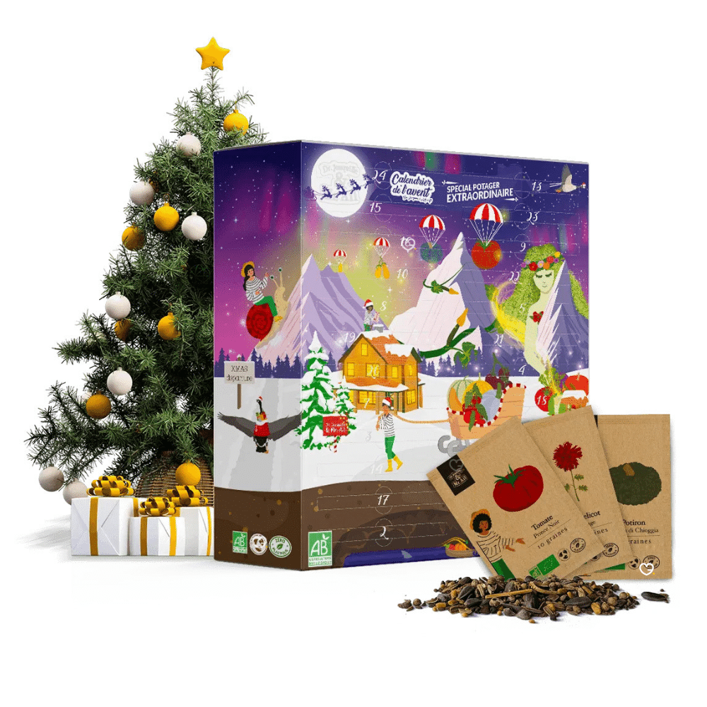 Redécouvrez la magie de l'Avent avec le Calendrier de l'Avent Potager 2025, une alternative éco-responsable qui remplace les chocolats traditionnels par 26 sachets de graines biologiques reproductibles. Ce calendrier unique vous fait découvrir pendant 24 jours des variétés rares et exceptionnelles, dont 60% de légumes, 20% de fleurs mellifères et 20% d'herbes aromatiques, incluant des trésors comme le piment Friggitello, le potimarron Marina di Chioggia ou encore la "meilleure tomate du monde". Contrairement aux calendriers éphémères, celui-ci offre une expérience durable qui se prolonge toute l'année dans votre potager, permettant de cultiver la biodiversité tout en créant de nouveaux souvenirs familiaux autour du jardinage. Un cadeau original et responsable qui allie tradition des fêtes et passion du jardinage, parfait pour tous les amoureux de la nature, qu'ils soient débutants ou jardiniers confirmés.