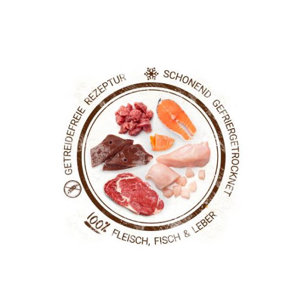 • Ingrédients principaux : Viande, poisson et foie naturels